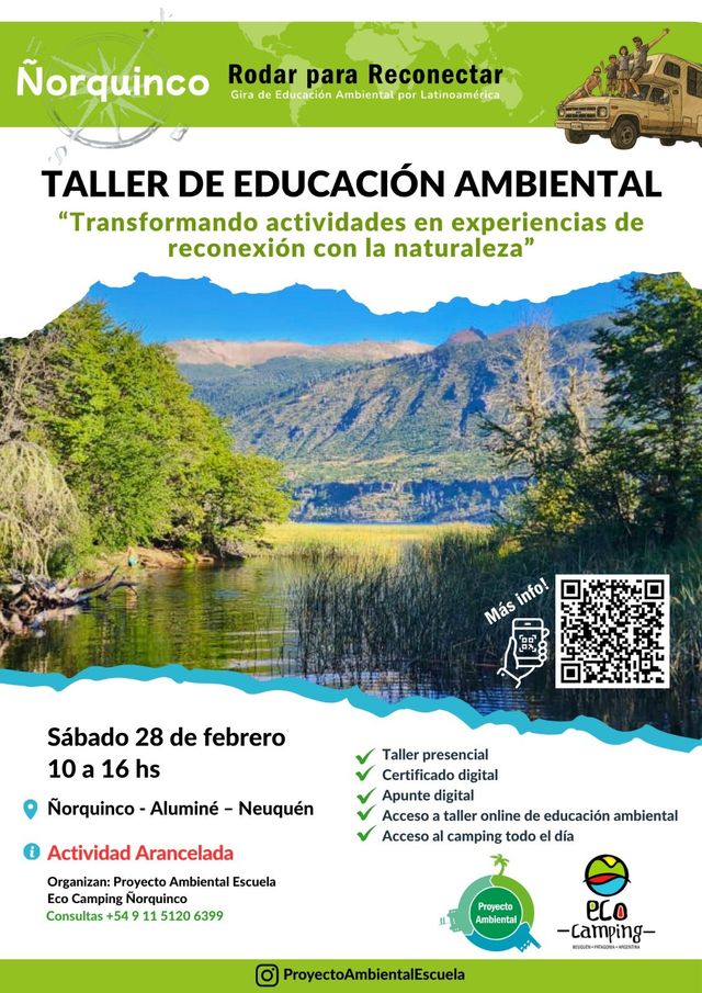 El Eco Camping Ñorquinco, junto a Proyecto Ambiental Escuela, invita a participar de este taller presencial, intensivo y experiencial, en el marco de la Gira de Educación Ambiental.