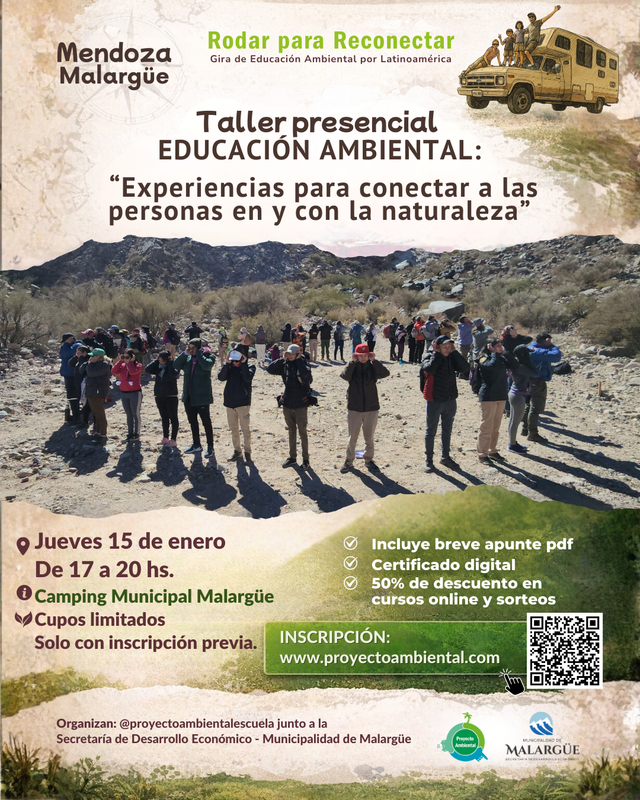 Sólo con inscripción previa: https://proyectoambiental.com/e/taller-educacion-ambiental-malargue